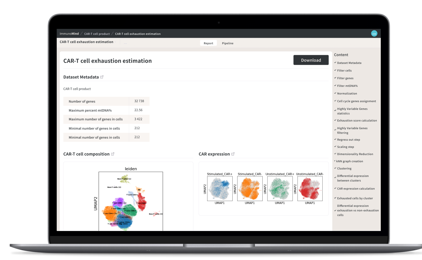 The actionable insights provided by Immunomind assist when selecting the most effective composition of a CAR-T product, and allow modification of the manufacturing process