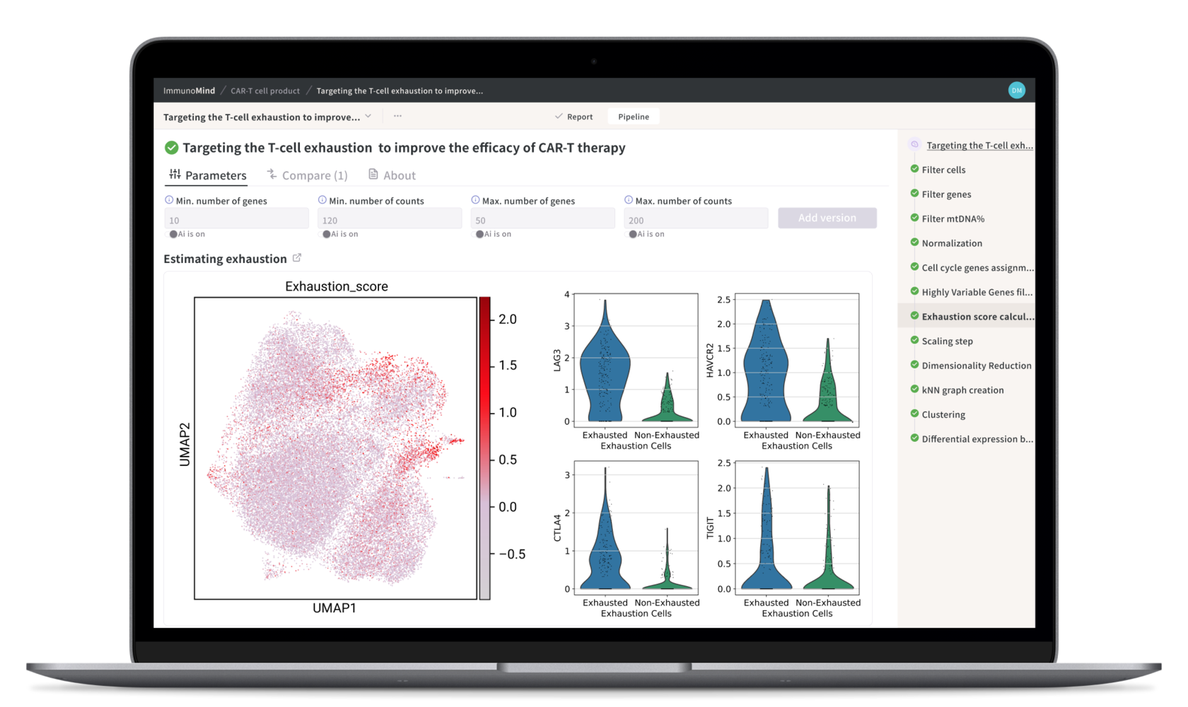 We provide a platform demo with examples of our proprietary pipelines. It is available once you create an account on eLabJournal and add ImmunoMind's plugin. Click "Go to ImmunoMind stand" button to see the platform in action.